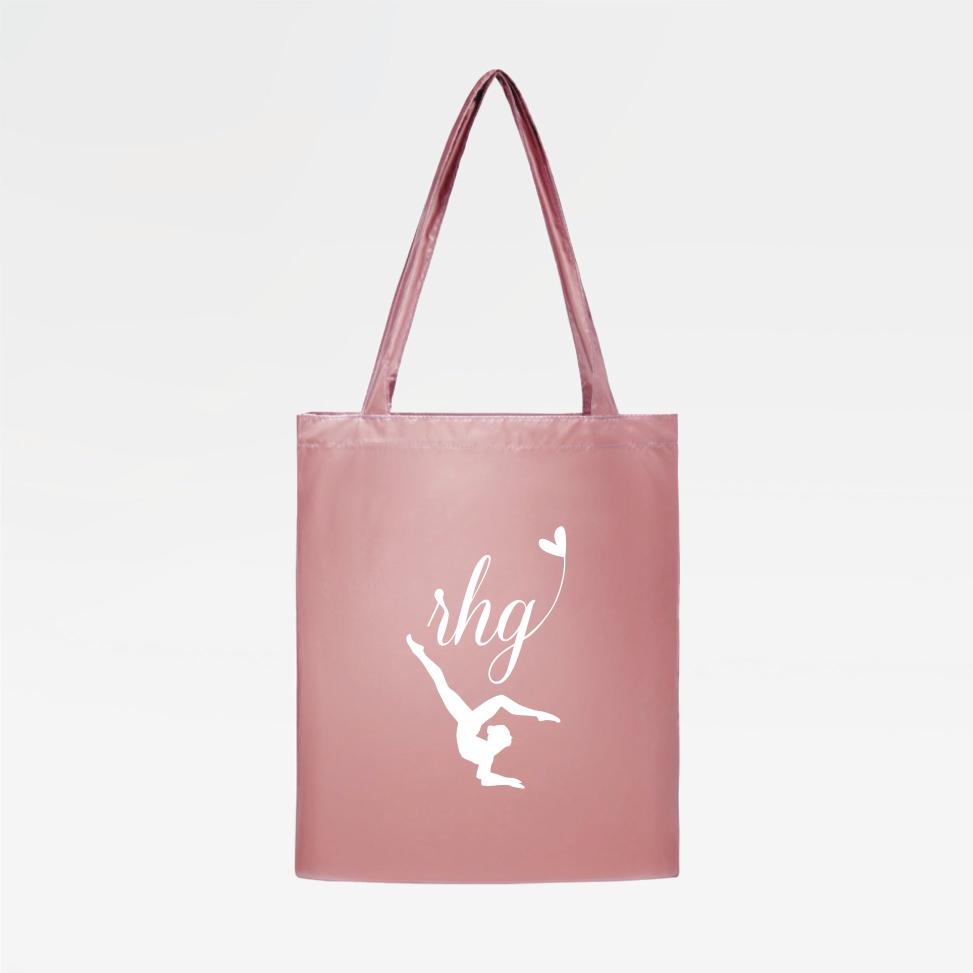Naramna torba z ročaji in trendovskim sijočim videzom.